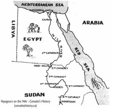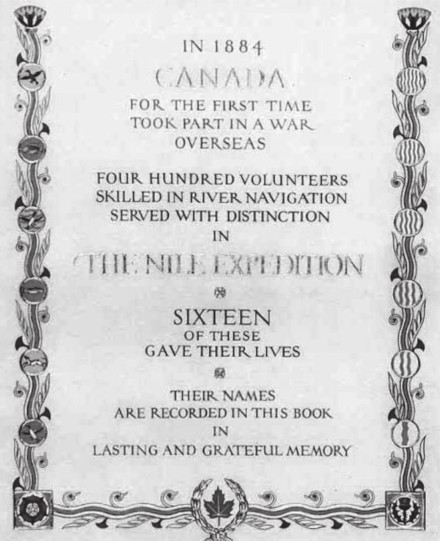 On September 14, 1884, a force of almost 400 voyageurs and others left Montreal for Egypt to take part in the Nile Expedition sometimes referred to as the Gordon Relief Expedition in the Sudan, Canada’s first participation in an overseas war. In depth information can be found on-line.1