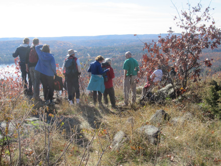 “Only those who have attempted to reach an altitude of 600 feet through thick shrubbery and over precipitous rocky ledges can form any idea of the physical effort involved in carrying out such an undertaking. After one hour and a one-half of steady climbing the summit was reached and the view southward therefrom which baffles description simply repaid the effort. The panoramic view covered a tract of country at least 48 miles south and a dozen east and west showing up the meandering river, hamlets and towns and the Capital of the Dominion, Ottawa with its many towers piercing the skies. After enjoyment to the full of the view and the partaking of an impromptu lunch at the summit the party returned about 1 p.m. weary and worn but all delighted with the outing.”